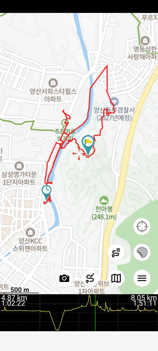 □ 코스 : 양산시 명동 명곡교~천마봉 옆산~회야강(8km)