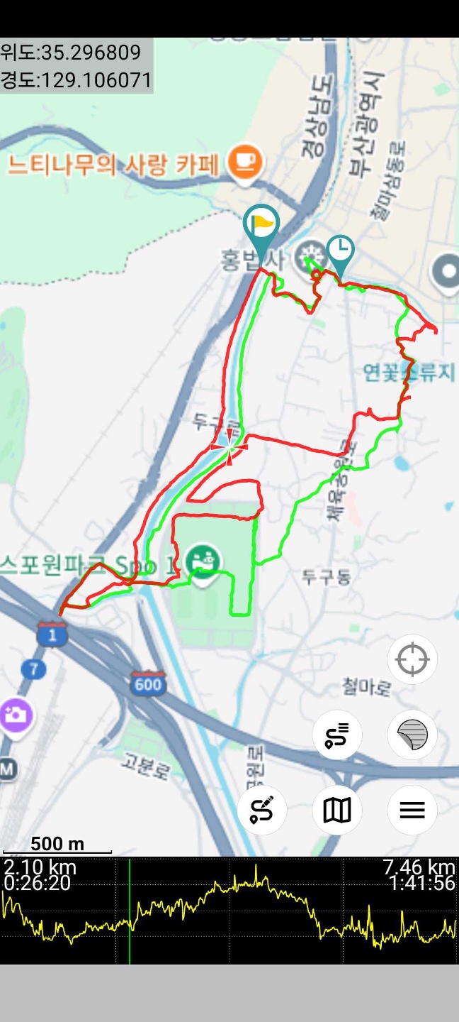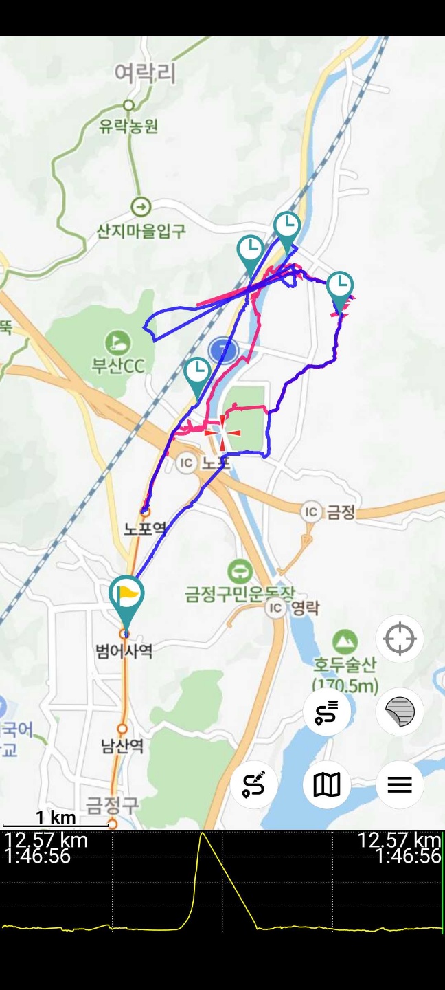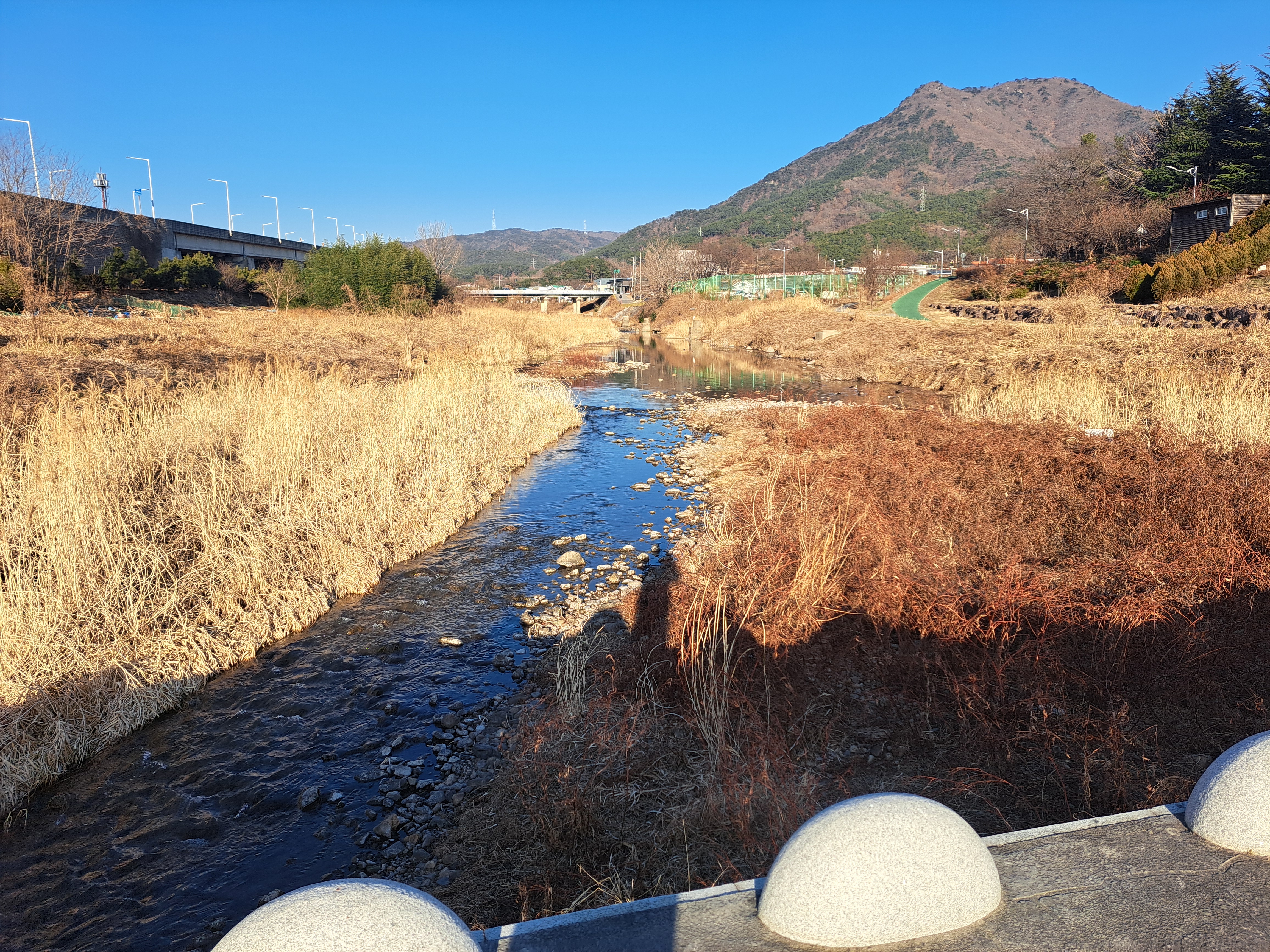□추가코스:노포동 수영강 다리4곳 넘어가고 연꽃소류지-중리못 돌아서 체육공원 뒷마을 지나 임석교-수영강교 지나 노포동 역에서 종료